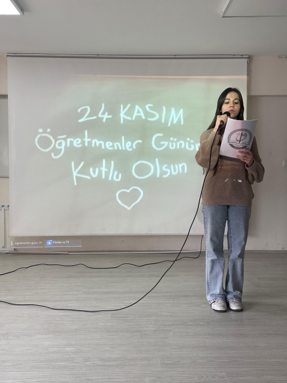 24 Kasım öğretmenler günü münasebetiyle okulumuzda düzenlenen program Saygı duruşu ve İstiklal marşı ile başladı. Kur’an-ı Kerim tilaveti ve şehit öğretmenlerimizin anılması ve dualarla devam etti. Meslek dersleri öğretmenimiz Ali İmat öğrencilerimizle tecrübelerini paylaştı. Öğrencilerimizin hazırladığı mini konserin ardından okul müdürümüz Arslan Yurduseven teşekkür konuşmalarını yaptı ve öğretmenlerimiz için hazırlanan hediyeler takdim edildi.